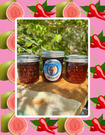 Mermelada de guayaba local con ajies picantes de nuestro jardín. Muy versátil para darle el toquecito picante a tus desayunos pero también para realzar tus creaciones al BBQ y esos aperitivos de queso frito que tanto te gustan. Empacada en envase de cristal reusable de 6 oz